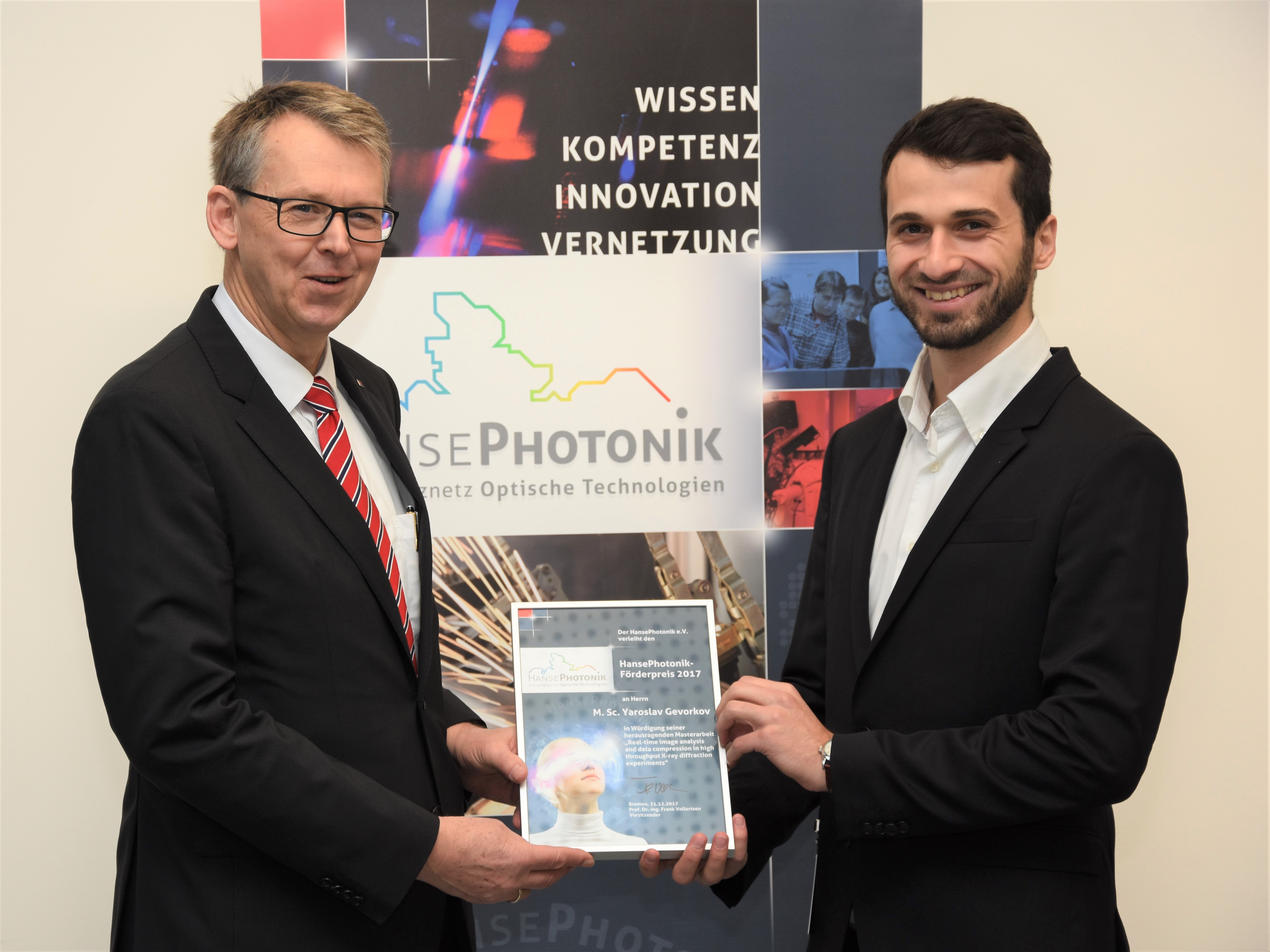 0101412_Gevorkov Preisträger M.Sc. Yaroslav Gevorkov (re.) mit dem HansePhotonik-Vorsitzenden Prof. Frank Vollertsen