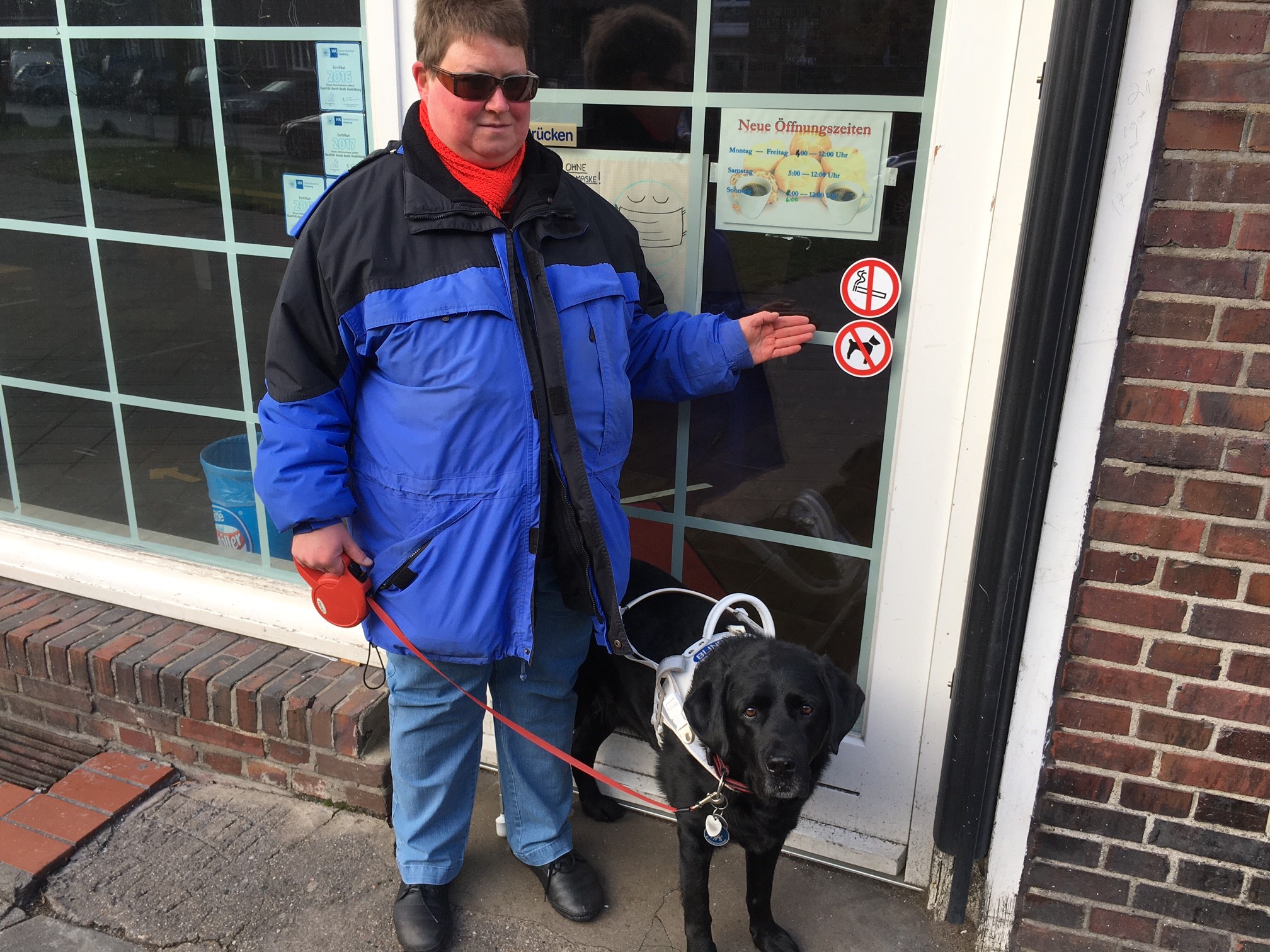 Susanne Aatz mit ihrem Blindenführhund Malte: Oft wird ihr der Zugang zu Lebensmittelgeschäften Gesundheitseinrichtungen und anderen Bereichen des öffentlichen Lebens untersagt. Foto: BSVH