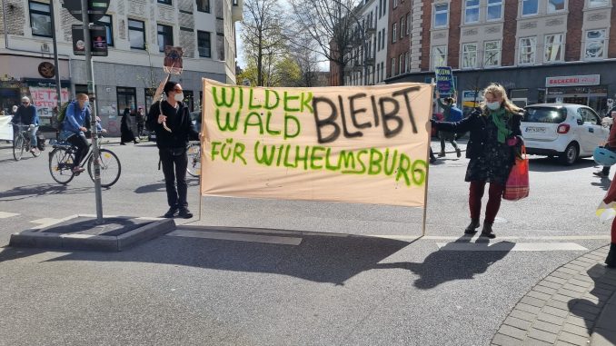 Geplant sind auf dem gut 20 Hektar großem Gelände zwischen Reiherstiegviertel, Ernst-August-Kanal und Spreehafen Wohnungen, Kitas, eine Sportplatzanlage, neue Arbeitsplätze und Frei- und Grünflächen (der Neue RUF berichtete). Dafür müssen aber von den gut 2.000 vorhandenen Bäumen gut 1.200 weichen, 250 sollen neugepflanzt werden, die restlichen rund 970 werden ausgeglichen – aber nicht in Wilhelmsburg. So soll der „Waldausgleich im Sinne einer Erstaufforstung“ für die Flächen westlich der Georg-Wilhelm-Straße im 40 Kilometer entfernten Hoinkenbostel (Niedersachen) und für die Flächen östlich der Georg-Wilhelm-Straße im 26 Kilometer entfernten Bönningstedt stattfinden.