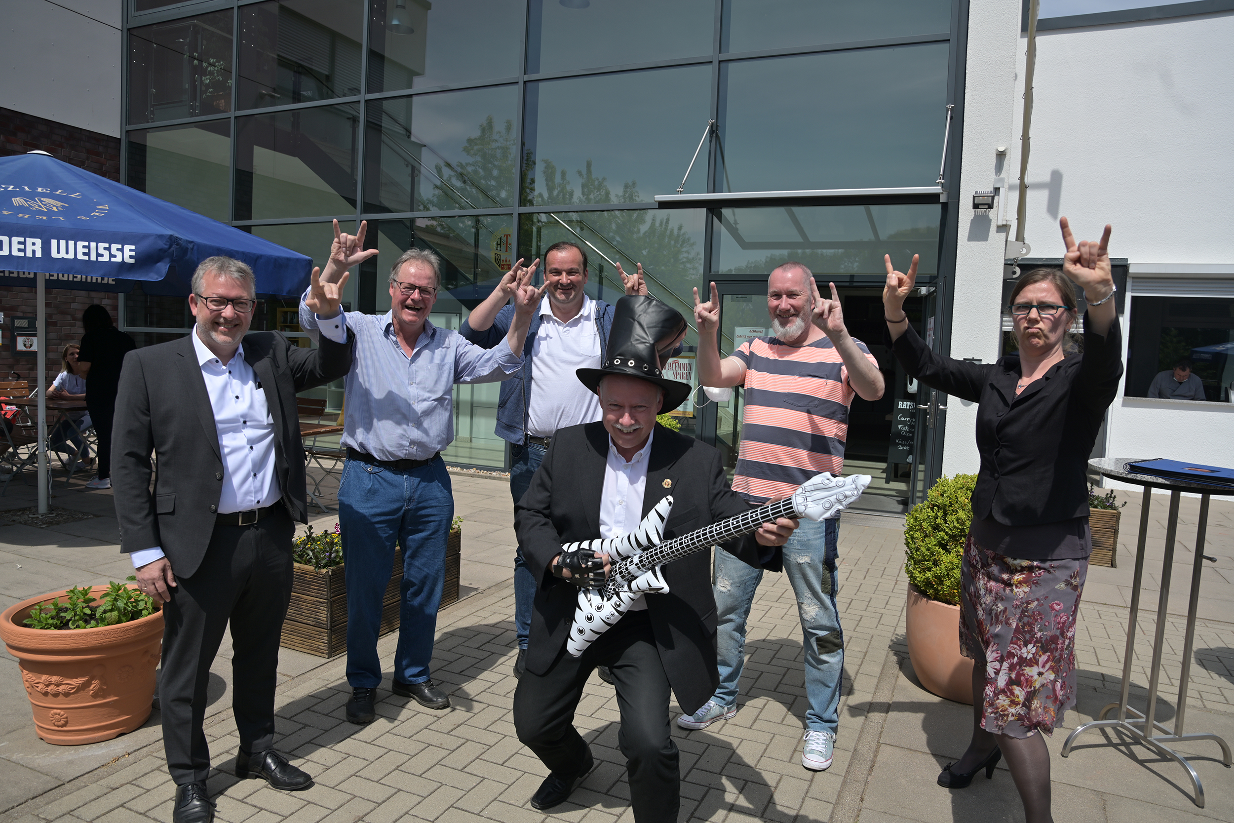 Für Rockfan Schlage gab es vom Vorstand um Michael Armbrecht, Ralph Fromhagen und Kathrin Baartz genau die richtigen Geschenke: Wenn irgendwann wieder Konzerte möglich sind, wird er gemeinsam mit seiner Familie zwei Konzerte nach Wahl besuchen. „Udo Lindenberg oder Tracy Chapman wären da meine erste Wahl“, verriet Schlage.