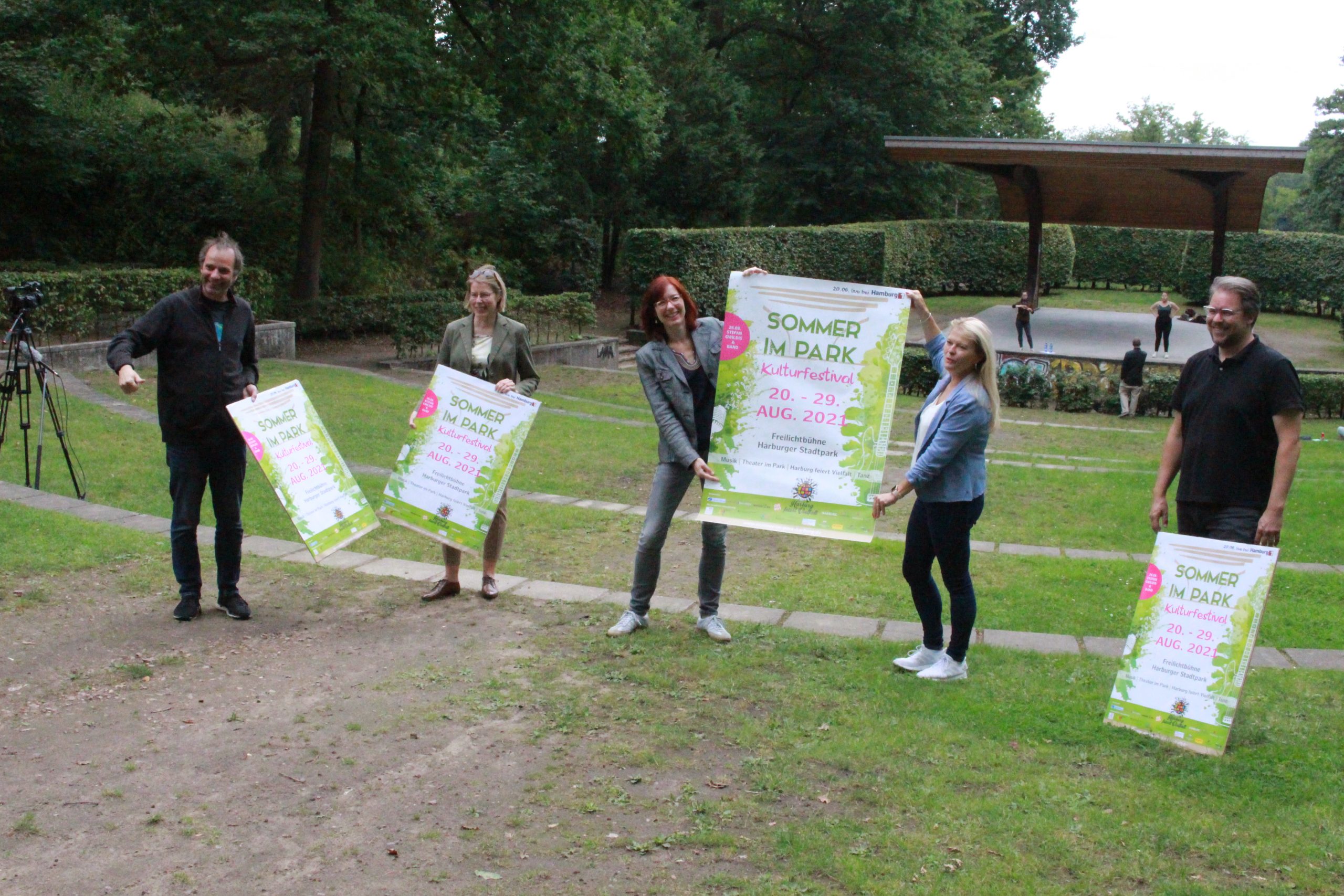 „Nach dem großen Erfolg der letzten drei Jahre findet das Open-Air-Kulturfestival „Sommer im Park“ endlich wieder in voller Länge statt“, freut sich die Citymanagerin Melanie-Gitte Lansmann. Vom 20. bis 29. August werden zehn Tage lang Kultur und die Vielfalt Harburgs auf die denkmalgeschützte Bühne im Harburger Stadtpark gebracht. Mit über 40 Acts erwartet die Besucher an den beiden Wochenenden Pop-, Blues-, Rock-, Klassik- und Jazzmusik sowie Auftritte von Orchestern, Tanz- und Kabarett-Gruppen. Zwischen den Wochenenden – und das ist eine der Neuerungen bei Harburgs Sommer im Park – gibt es Theater von Profis für die Großen und von Kindern gemacht für die Kleinen sowie mehrere Pop-up-Theater-Führungen von der Gruppe „Theater im Park“.