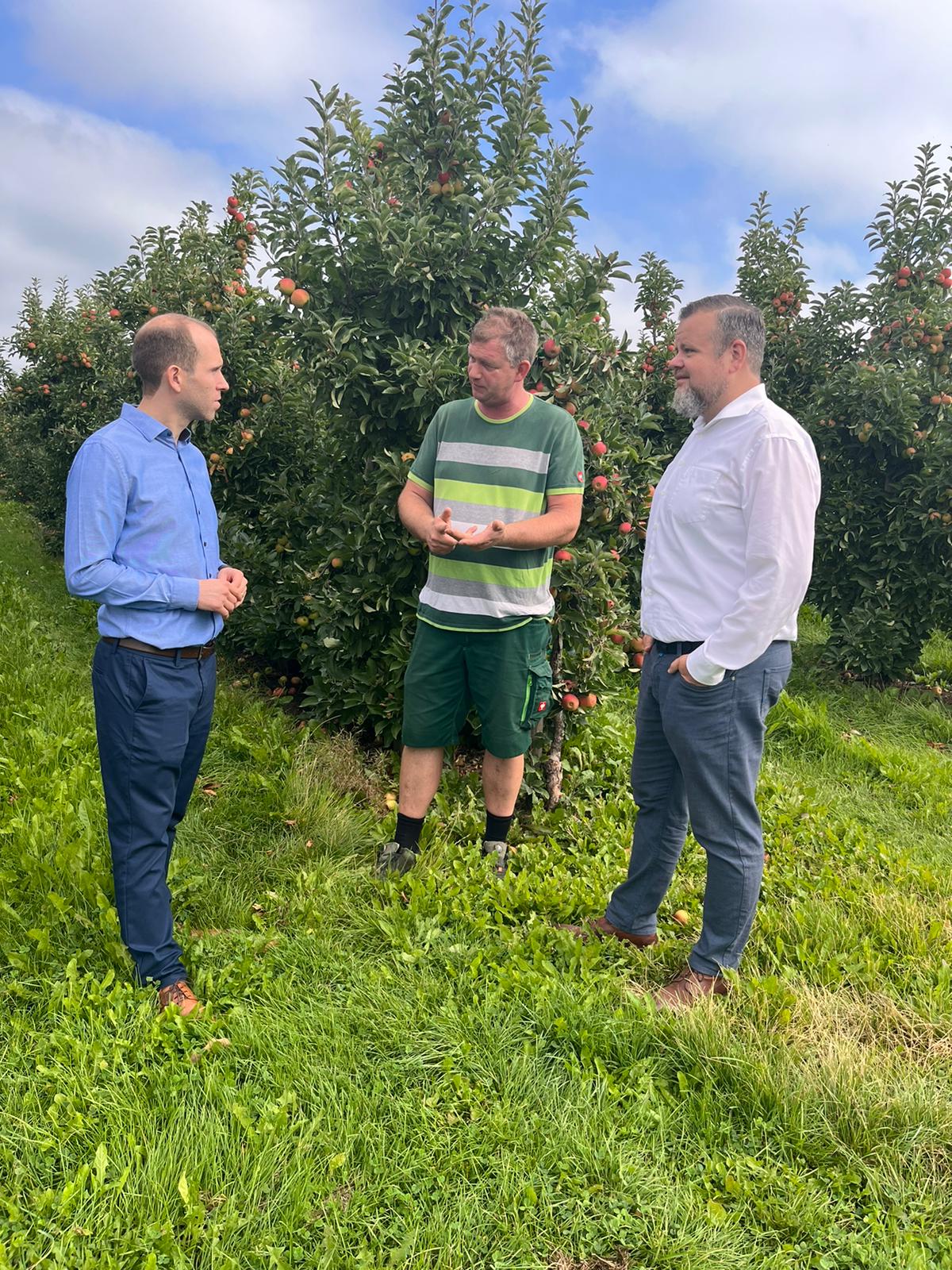 Anschließend stand ein Besuch in Francop an. Hendrik Benitt, Obstbauer im Hamburger Teil des Alten Landes, kann der gegenwärtigen politischen Führung ebenfalls wenig abgewinnen. Er spüre die akute Rohstoffkrise bereits jetzt im stressigen Geschäftsalltag. Steigende Stromkosten machen das wirtschaftliche Überleben noch schwieriger als die Corona-Krise. Sicher sei nur, dass ein Ende der wirtschaftlichen Schwierigkeiten nicht erkennbar sei. Im Gespräch mit Thering und Trepoll machte er seinem Ärger Luft und appellierte an die Politik, die Obstbauern nicht alleine zu lassen: Fehlende Unterstützung, unsinnige Vorschriften und die horrend hohen Verbraucherkosten gefährden Arbeitsplätze und die lokale Landwirtschaft. Politische Hilfe suche man vergebens. Zu den Entscheidern in der Heimat und der Bundeshauptstadt hat er schon länger kein Vertrauen mehr.
