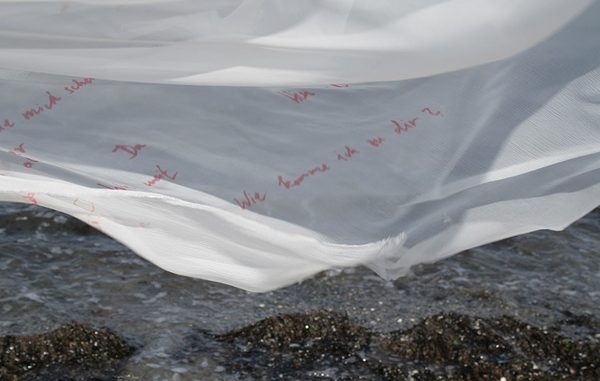 Von Harburg nach Travemünde und zurück ist Anne Pflug mit einem Stück Seide gereist und hat auf ihrem Weg die fragmentarischen Eindrücke und Sprachfetzen der anderen Reisenden aufgefangen und notiert: Sie zeugen von Sehnsüchten nach Orten und Personen, von Nähe und Distanz. In das Material der Seide eingeschrieben ist auch das Ziel ihrer Reise, der Travemünder Strand, bzw. das Meer, dessen Salz den Stoff verändert hat. Mit einer Performance kommt am 5. September um 16 Uhr die Seide in den Vitrinen des Kunstvereins Harburger Bahnhof (KVHBF) an, die Performance beginnt um 17 Uhr. Zu sehen bis zum 4. Oktober. Es ist eine Ausstellung in der Reihe „Other Site“ nach einem Konzept von Anne Pflug, Hanna Schönhof und Darja Shatalova.
