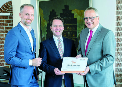 Birkel – Krüger – Zeinert ihk,Wege Foto: t&w IHK Lüneburg Zeinert, Dr. Krüger und Herrn Birkel, neuer Aufsichtsratsvorsitzender der Süderelbe AG Aktienübergabe