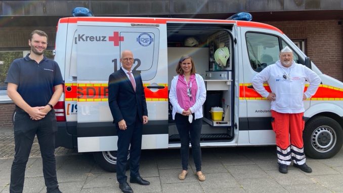 Am Donnerstag besuchte Peter Tschentscher, Hamburgs Erster Bürgermeister, die vom DRK Harburg personell und logistisch unterstützten Impfaktionen in der Evangelisch-Lutherischen Apostelkirche in Harburg.