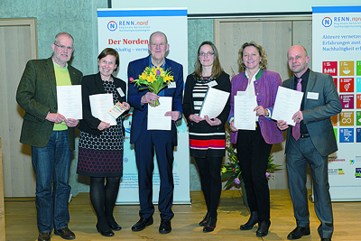 Die Partner eröffneten gemeinsam die RENN.nord: v.l. Professor Peter Adolphi (Meckelnburg-Vorpommern), Claudia Sanner (Niedersachsen), Hartmut Eckert (Hamburg), Ann Kruse (Niedersachsen), Anne Benett-Sturies (Schleswig-Holstein) und Martin Schulze (Bremen). Foto: Alvaro Moreno