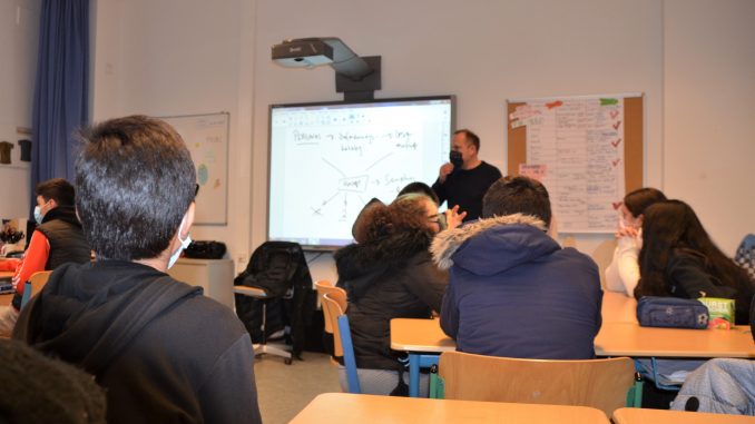 Vor über einem Jahr haben die Schülerinnen und Schüler begonnen, ihre eigenen Longboards an ihrem Profiltag zu bauen. Longboards sind die coolere Variante der Skateboards. Diese sind seit Oktober einsatzbereit, und im Englischunterricht wurde darüber sinniert, durch welche angesagten Städte die Jugendlichen mit ihren Boards am liebsten rollen würden. Strittig war die Städtefrage, einig waren sich alle, dass für den Transport des Longboards im Flugzeug eine passende Tasche notwendig sei: Die Geburt einer neuen Projektidee. Englischlehrerin Gundi Wiemer stellte den Kontakt zu Freund und Taschenproduzent Finsterin her. Nun sollen mit seiner Expertise Taschen geplant und hergestellt werden. Taschenproduzent Marc Finsterlin erklärt die einzelnen betriebswirtschaftlichen Schritte.