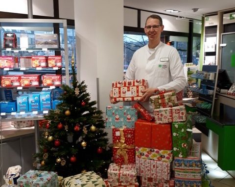 Zum diesjährigen Weihnachtsfest hat die Damian-Apotheke am Sand ihre Kunden wieder dazu aufgerufen, Päckchen für bedürftige Kinder zu Gunsten der Harburger Tafel zu spenden. Diese Aktion hat mittlerweile schon Tradition, und bereits seit vielen Jahren sammelt die Damian-Apotheke am Sand Geschenke für Kinder, die sonst vielleicht keine Bescherung zu Weihnachten hätten.