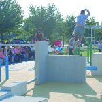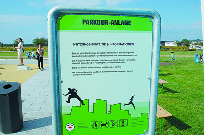 Der gesamte Quartierspark wurde in zwei Bauabschnitten realisiert: im ersten entstand das Grundgerüst aus Wiese, Baumpflanzungen und Hauptwegen und im zweiten wurden die weiteren Wege sowie das Sport- und Spielband hergestellt. Damit alle lange Zeit etwas von dem Parcour haben, gab Pein vor allem den Jugendlichen einen guten Rat mit auf den Weg: „Das ist eure Anlage. Passt auf, dass sie nicht beschmiert wird.“