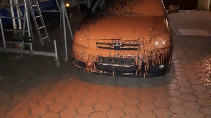 Unter anderem sei bei dem Farbanschlag auf das Grundstück von AfD-Bezirkspolitikerin Nicole Jordan ein Auto mit Farbe übergossen worden teilte die AfD-Fraktion mit. Foto: AfD