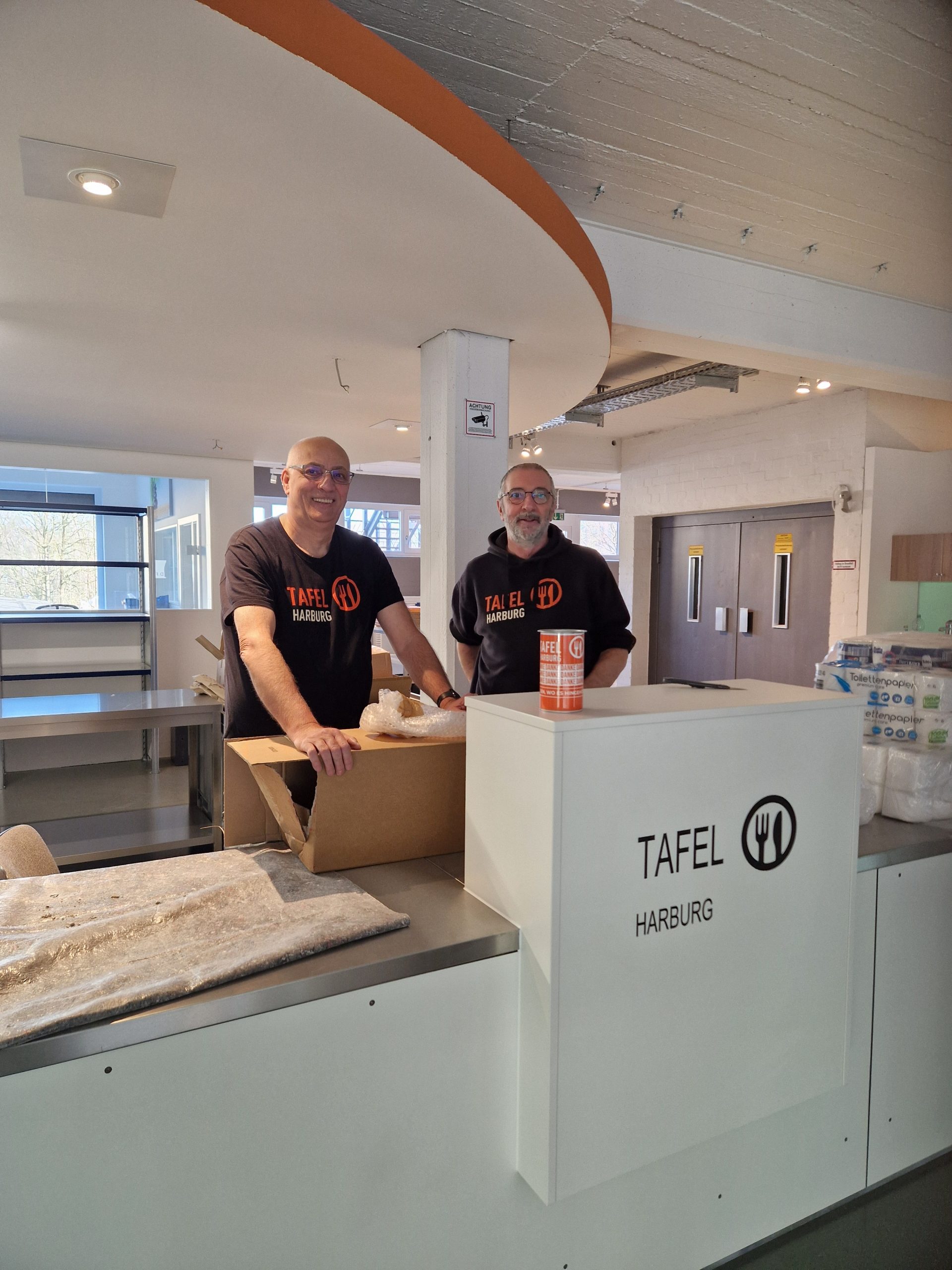Rückblick: Seit 1996 hatte die Tafel ihre Adresse in der Buxtehuder Straße 31, erreichbar über den Helmsweg. Eigentlich war der Standort im ehemaligen Gartenbauamt nur als Zwischenlösung geplant und wurde irgendwann zu klein. Auch das Abrigado, die Anlaufstelle für drogenabhängige Menschen neben dem jüdischen Friedhof auf dem Schwarzenberg, brauchte neue Räumlichkeiten. Deshalb kamen die Behörden auf die Idee, ein Ensemble zu bauen, in dem einerseits die Tafel und andererseits das Abrigado einen Platz finden. An gleicher Stelle wurde auch noch ein Haus mit 50 Wohneinheiten geplant für Menschen, die sonst große Schwierigkeiten haben, eine Wohnung zu finden. Diese Pläne aber zogen sich in die Länge, die Tafel hatte Angst, Ende 2023 aus den alten Räumen raus zu müssen, neue Räumlichkeiten waren schwer zu finden. So erwies es sich als Glücksfall, als jemand auf sie zukam und ihnen das Gebäude, wo vorher ein Sanitär-Großhandel beheimatet war, zur Miete anzubieten (der Neue RUF berichtete). Zwar hatte die Tafel schon eine Absichtserklärung bezüglich des neuen Gebäudes unterschrieben, aber die zuständige Sozialbehörde begrüßte „die Eigeninitiative des Harburger Tafel e.V.“, wie eine Sprecherin im vergangenen Jahr mitteilte.
