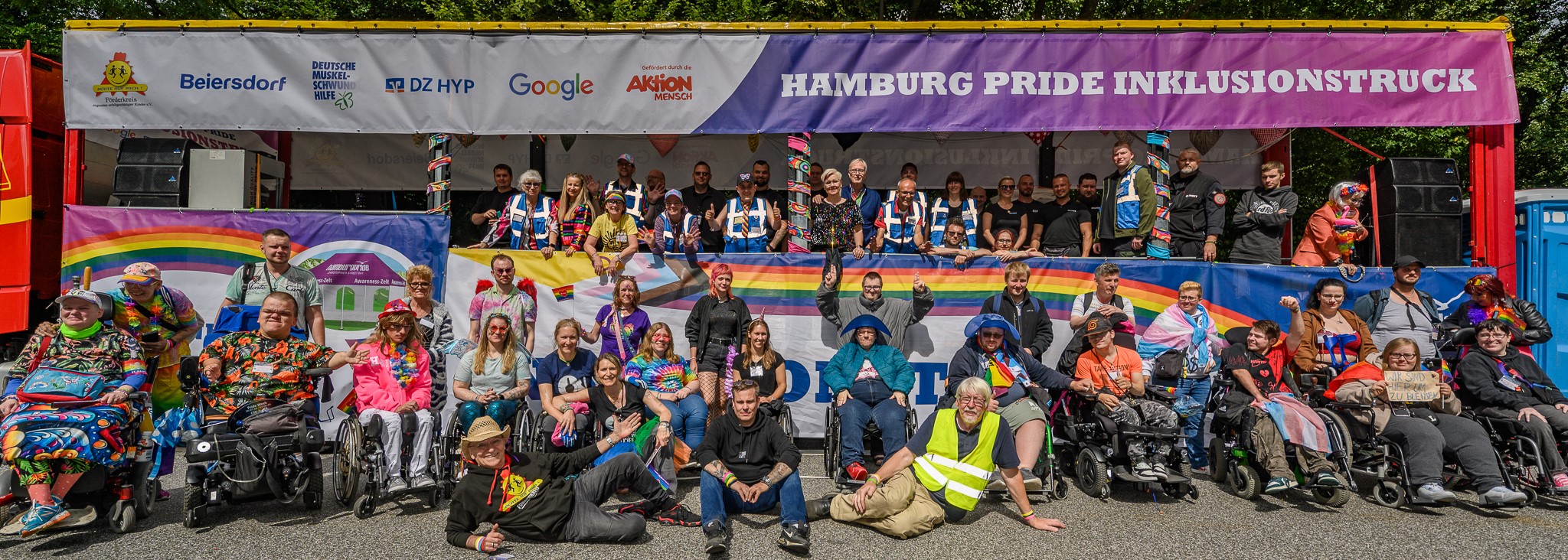 Alle Gäste des Inklusionstrucks von Peter Sebastian und das komplette Team bevor es zur Pride-Parade losging Foto: AJ Photoart