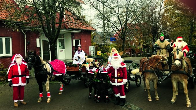 In Stelle, Fliegenberg und Ashausen überraschte der Nikolaus am frühen Morgen des 6. Dezember die Kinder in den Horten und Kindertagesstätten. Mit Pferd und Kutsche kam der Nikolaus in Begleitung von Engeln und Elfen an die zahlreichen Tagesstätten und Horte und verteilte insgesamt 630 bunt gefüllte Weihnachtstüten. Die überraschten Kinder strahlten um die Wette und freuten sich bei Glockenklang und Hufgetrappel über die vorweihnachtlichen süßen Tüten. Die Fahrsport-Gruppe Elbe-Geest e.V. Stelle organisierte die Fahrten am Nikolausmorgen mit drei Kutschen. Besetzt waren die weihnachtlich geschmückten Kutschen mit Claudia Böhm und Andreas Böhm, dem 1. Vorsitzenden Detlev Wullenweber mit Günter Bracker sowie Anja Müller und Yvonne Kasten. Vorstand und Mitglieder des Gewerbeverein Stelle e.V. als Initiator hatten mit Hilfe von weiteren Sponsoren Obst und weihnachtliche Süßigkeiten eingeworben und damit kurz vorm Nikolaustag die Tüten in den Räumen der Steller DRK-Begegnungsstätte befüllt.