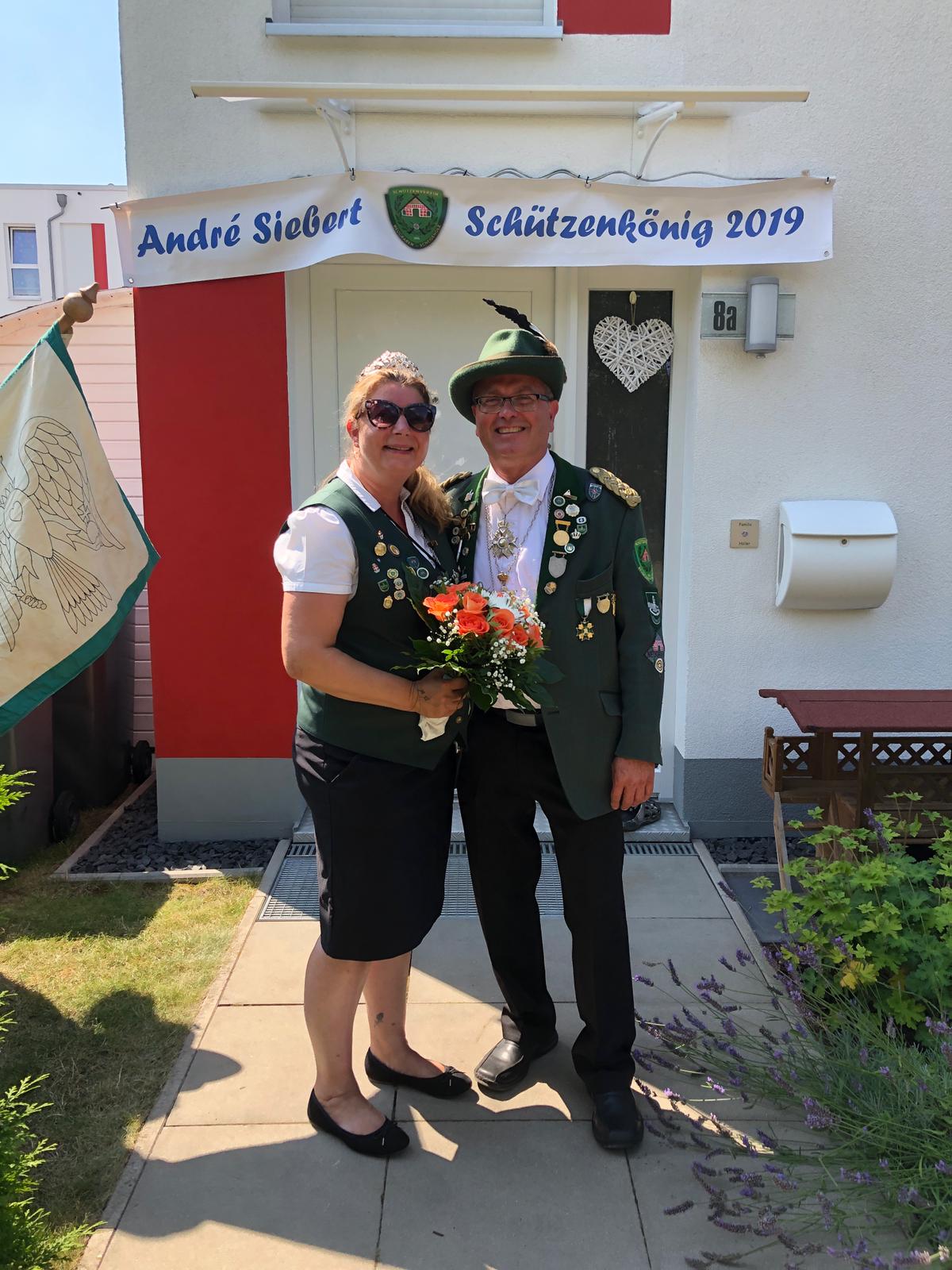 Schützenkönig André Siebert mit seiner Königin Yvonne Helmerichs und den Adjutantenpaaren bedankten sich bei allen Anwesenden mit einem kalten Getränk und übergaben mit dem Jugendleiter und Vizekönig Gerd Wittleben an alle Jugendlichen eine Tüte mit Süßigkeiten. Einen großen Applaus bekamen alle Würdenträger, dass sie ihr Königsjahr um ein weiteres Jahr verlängern und bis zum Schützenfestwochenende 2022 den Verein vertreten.