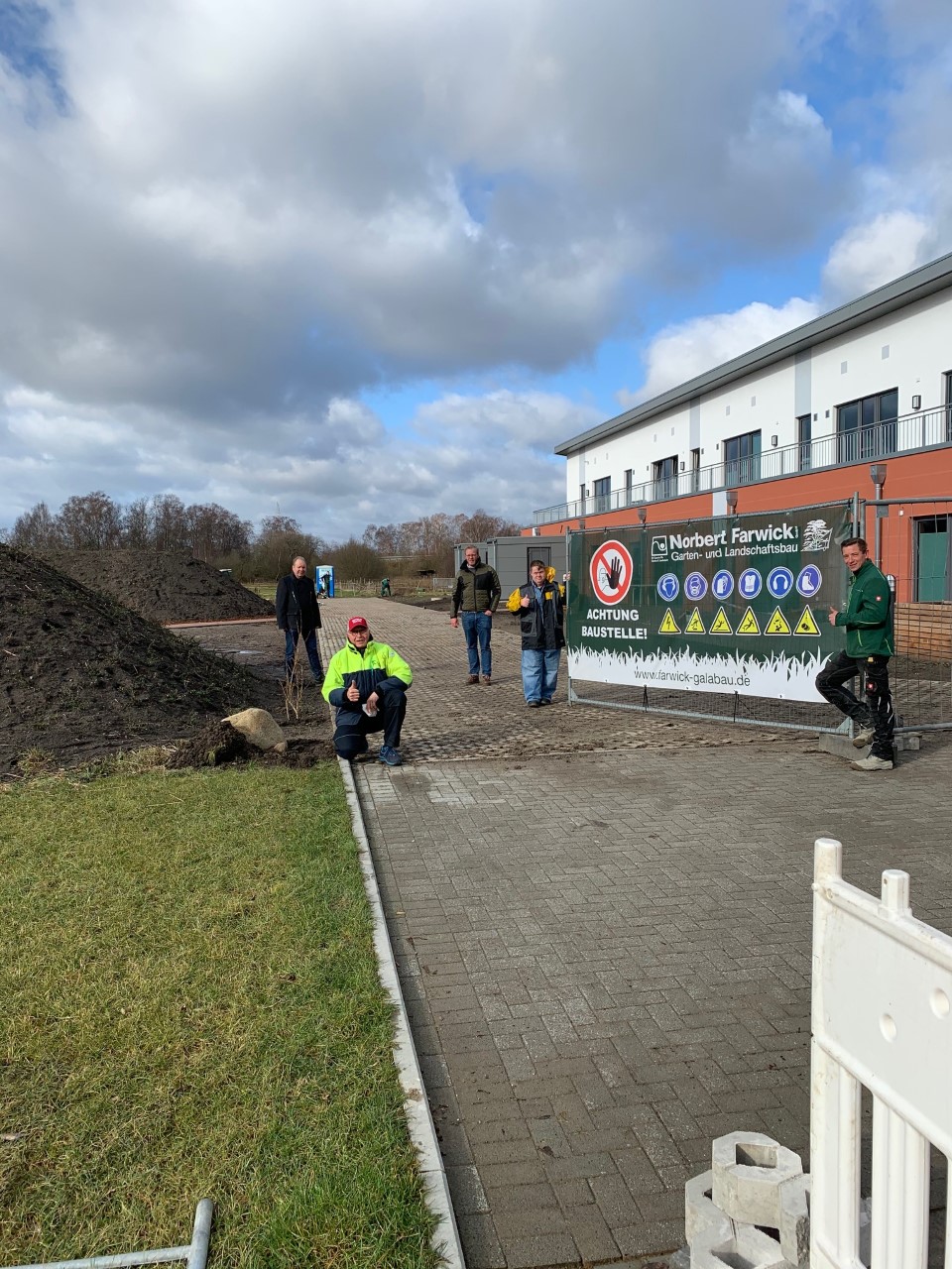 Sonja Schwarz -Nach Ende der Gartenarbeiten freuen sich Dr. Joachim Köhne Janes Vitus Farwick LeA-Haustechniker Djordje Marinkovic Tafö-Teilnehmer Barne Kuderna und Marcel Gerken über das gelungene Ergebnis. (v.l.n.r.).