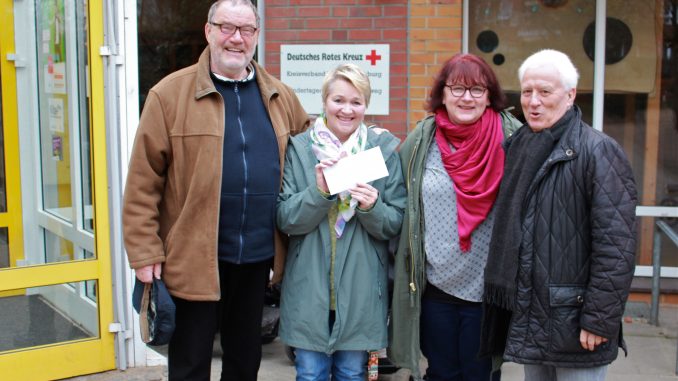 pm -Caroline Liebelt-Gehrke (2.v.l.) und Petra Carlstedt nahmen von Holger Nowak (li.) und und Bernhard Preuß die Spende des Stammtisches entgegen