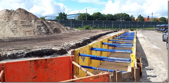 Der neue S-Bahnzugang im Neubaugebiet Vogelkamp Neugraben wirft seine Schatten voraus. Zur Erinnerung: Für die Grundstücke entlang der Bahn wird es ein neues Bebauungsplanverfahren (NF 75) geben. Hier soll eine Mischung aus Wohnen und Gewerbe entstehen. Ein neuer Zugang zur S-Bahnhaltestelle Neugraben entsteht bis 2022 am westlichen Ende der Bahnsteige, der Endausbau der Straßen erfolgt sukzessive. Seit einigen Wochen wird entlang der Bahnstrecke ein Schacht vorangetrieben. „Bei dem hier angesprochenen „Schacht“ handelt es sich um die Baugrube für erforderliche Leitungsumlegungen der Wasserver- und -entsorgung. Als vorbereitende Arbeiten für den neuen S-Bahnzugang wurden diese Umlegungen notwendig. Hierbei handelt es sich um zwei Schmutzwassertransportleitungen der Hamburger Stadtentwässerung AöR (Durchmesser 70 und 35 cm) sowie eine Trinkwassertransportleitung der Hamburger Wasserwerke GmbH (Durchmesser 50 cm)“, teilte IBA-Pressesprecher Arne von Maydell auf Nachfrage mit.