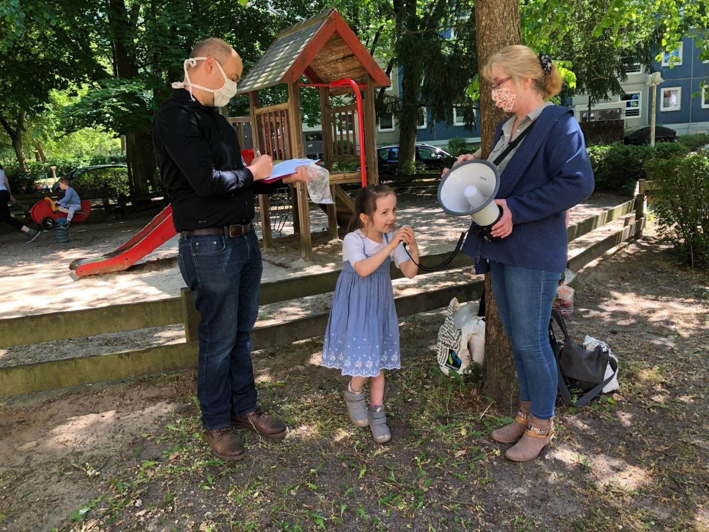 Beispielsweise war die SPD-Politikerin Beate Pohlmann mit Thomas Maimanakos und dessen 5-jähriger Tochter unterwegs. Ihre Eindrücke waren durchweg positiv. „Der Kontakt zu den Menschen war sehr schön. Sich zu sehen und unterhalten zu können ist nicht mehr selbstverständlich.“ Pohlmann regte an, dass die Aktion ruhig mal wiederholt werden sollte. Es gebe hier viele Nachbarn, die nicht mehr so mobil seien und sich über eine nette Abwechslung freuen würden. Sie wäre auf jedem Fall wieder dabei.