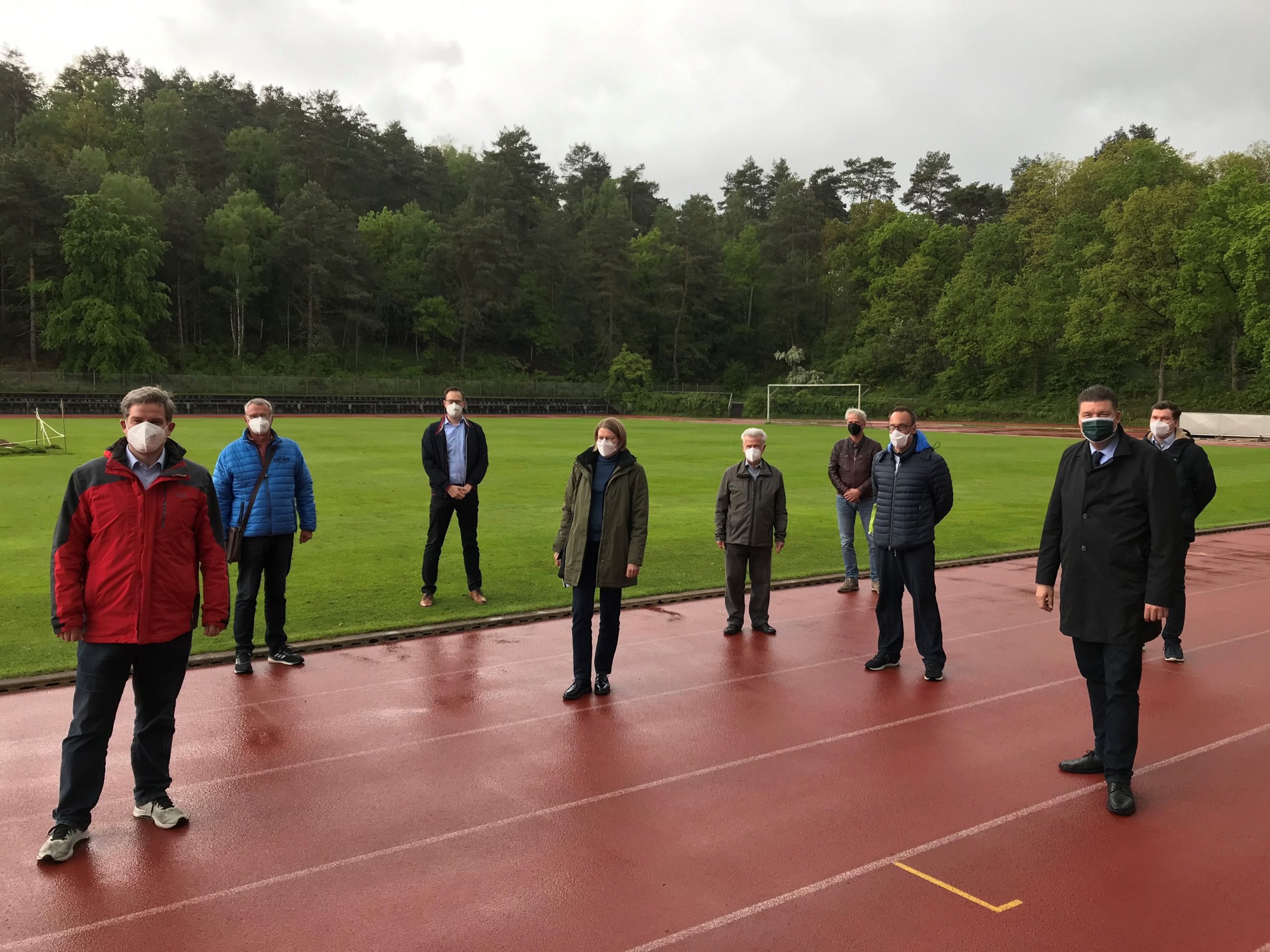 HNT -Metin Hakverdi Holger Böhm Mark Schütter Dr. Anke Jobmann Reinhold Stehr Henning Reh Mark Schepanski Dr. Andreas Dressel und Sebastian Alsgut (v.l.n.r.) auf der Sportanlage Opferberg