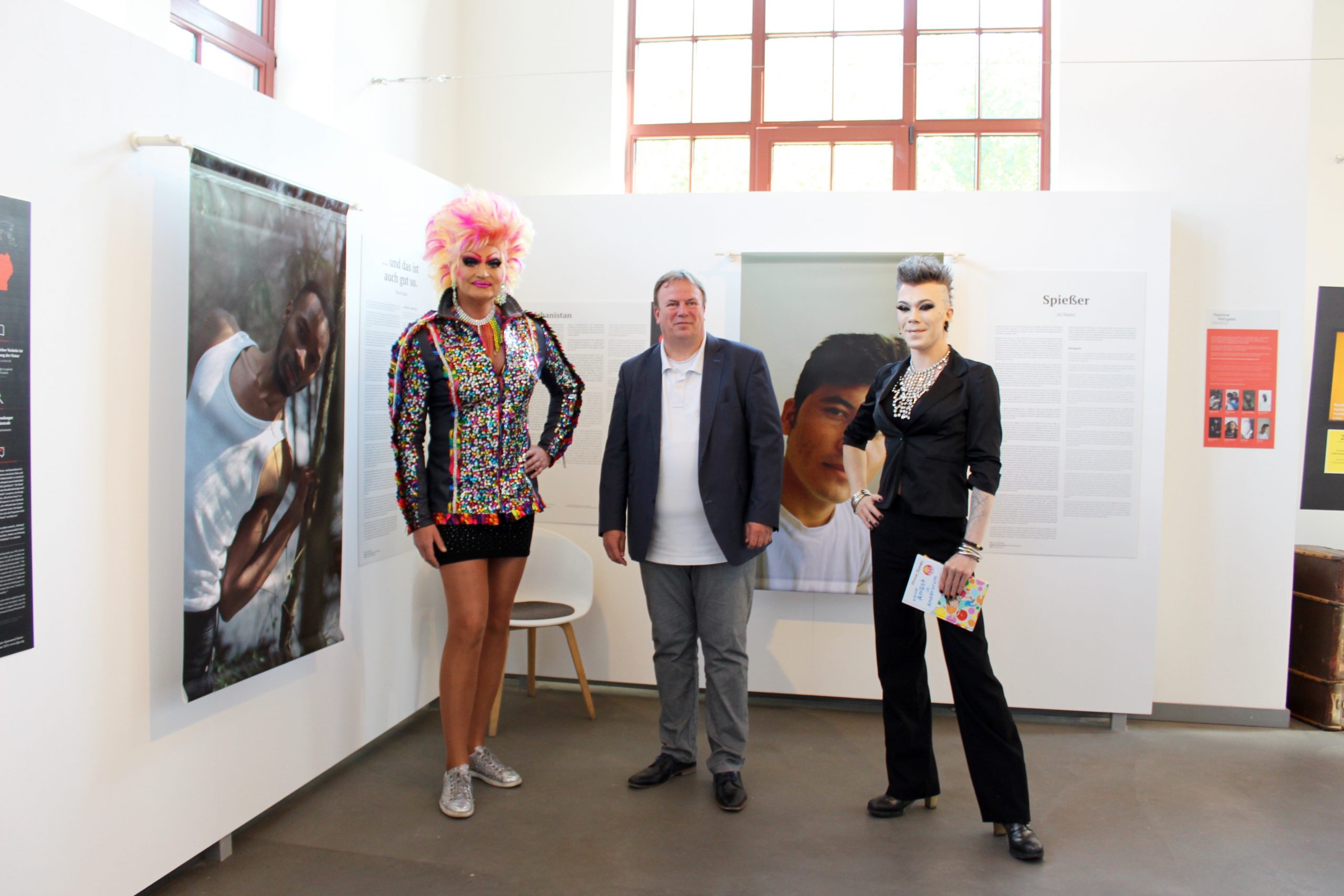 Schirmherrin Olivia Jones ergänzt: „Es ist doch völlig verrückt, dass im dritten Jahrtausend immer noch Menschen verfolgt, bedroht, gefoltert und getötet werden, nur weil sie sich als Mann zu Männern oder als Frau zu Frauen hingezogen fühlen. Wir leben doch nicht mehr im Mittelalter. Und deshalb werden wir Inhalte der Ausstellung auch in unser Bildungsprojekt Olivia macht Schule übernehmen. Unsere Freiheiten sind nicht selbstverständlich. Das muss man immer wieder bewusst machen.“ Olivia Jones selber hat auch Geflüchtete in ihrem Bekanntenkreis. „Das ist haarsträubend, was die erzählen!“