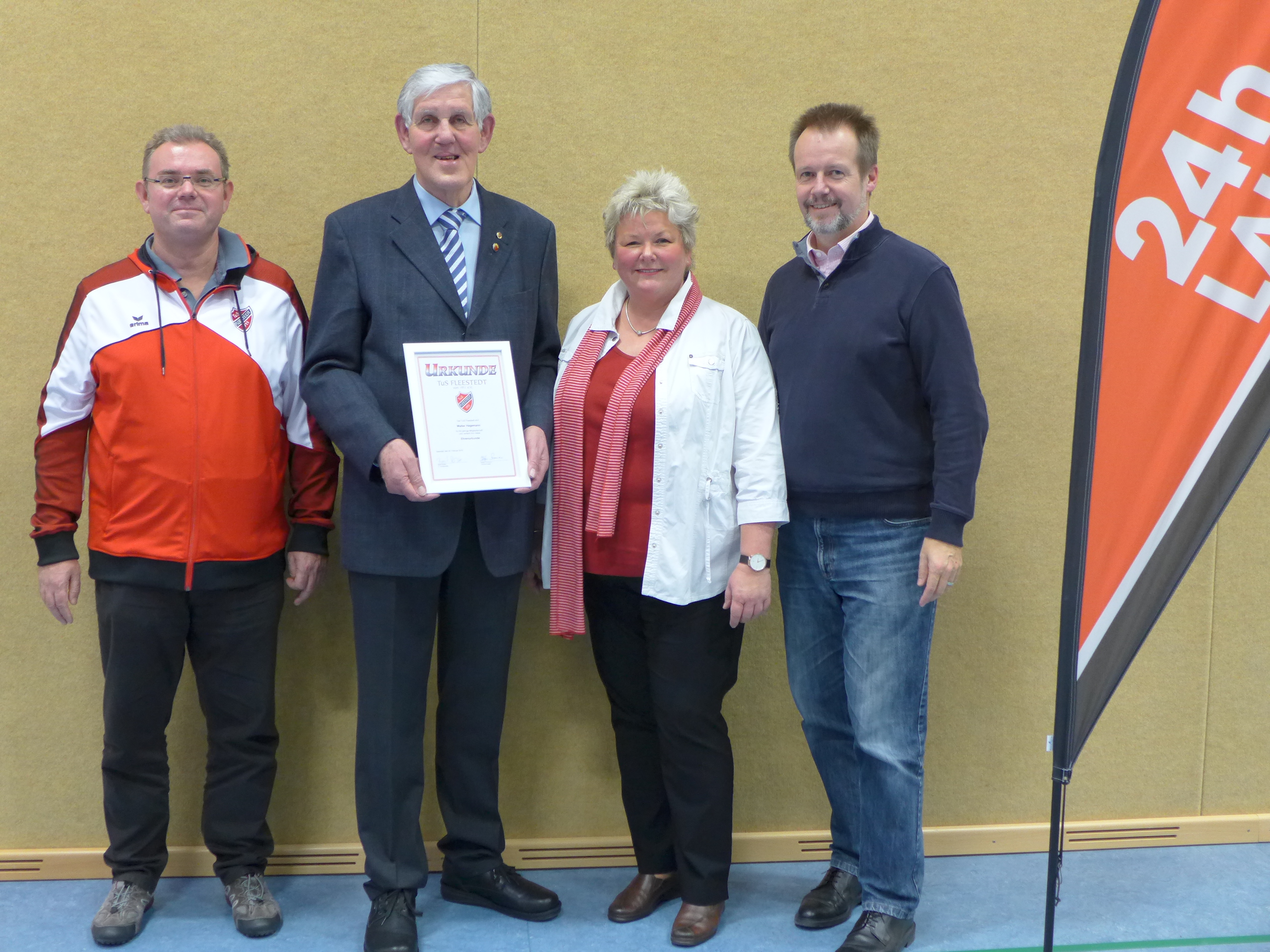 TuS Fleestedt -Der TuS-Vorstand 2019: Finanzvorstand Stefan Frommann Vorsitzender Walter Hagemann 2. Vorsitzende Berit Rohte Pressewart Ulrich Vergin.