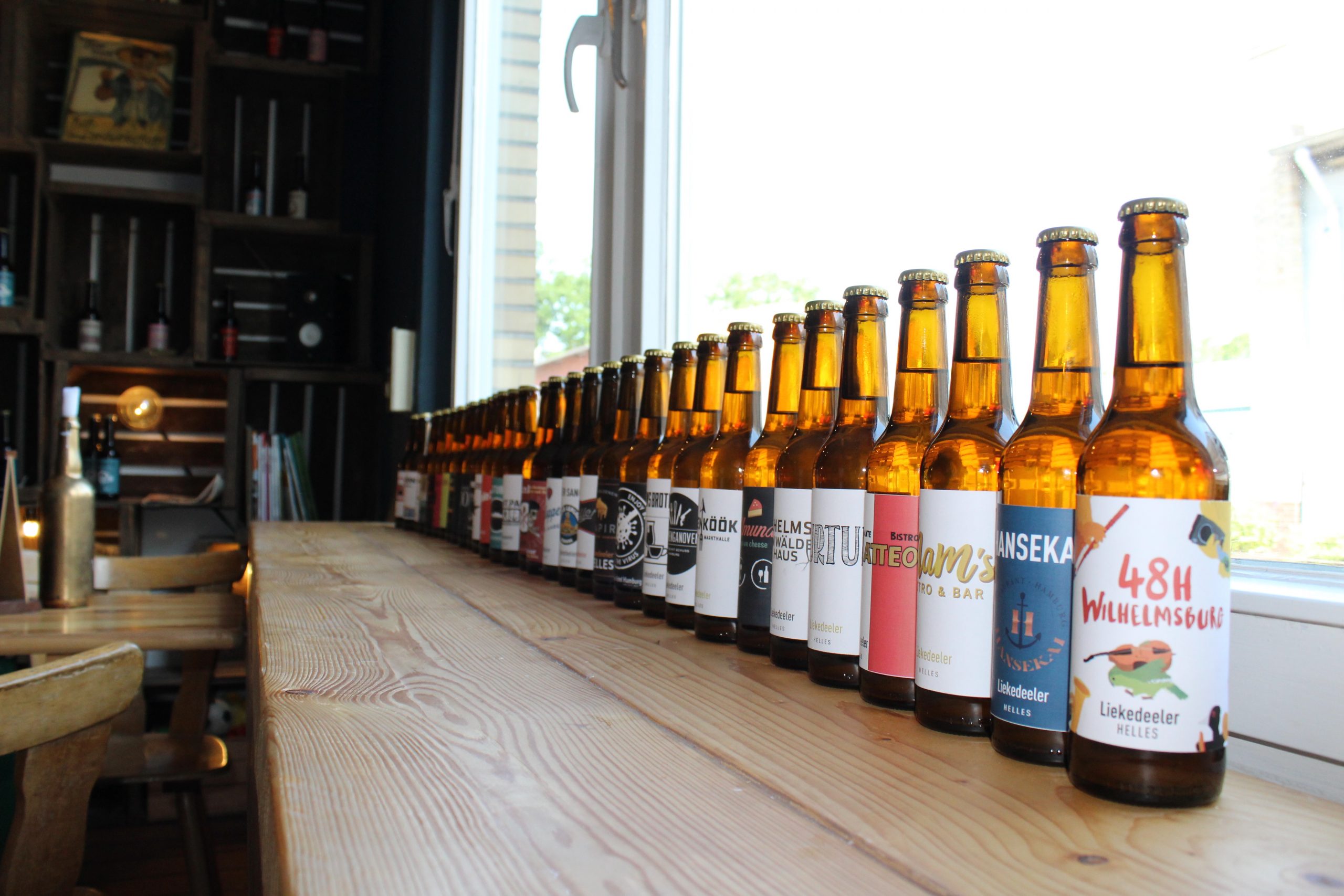 Sie stehen in Reih und Glied an der Fensterscheibe, dicht an dicht, jede mit einem anderen Etikett, der Inhalt aber ist immer der gleiche: Likedeeler Helles. Die rund 30 Bierflaschen im Schankraum stehen exemplarisch für eine kreative Solidaritätsaktion, die die Wilhelmsburger Bio-Brauerei Wildwuchs Anfang Mai wegen der Corona-Krise ins Leben gerufen hat. Wer sein Lieblingsrestaurant, -kneipe, -festival unterstützen möchte, kann im Online-Shop ein Sixpack Bier mit den Etikett seines Favoriten bestellen, und zwar zum Solipreis von 20 Euro, von dem 10 Euro an den jeweiligen Laden/Festival gehen. Das Ziel dahinter: „Mit unserem „Likedeeler Helles“ möchten auch wir einen Beitrag zum Erhalt der Hamburger Gastronomie- und Kulturszene leisten. Und genau wie Klaus Störtebeker und Co. ihre Beute damals zu gleichen Stücken untereinander aufteilten, also „lieke deelten“, machen wir es auch: Die Hälfte vom Umsatz geht an die entsprechende Location“, erklärt Jule Matthies von der Bio-Brauerei. „Auch wenn die Gastronomie mittlerweile wieder geöffnet hat, schließt es die Lücken leider nicht. Und es wäre sehr traurig, wenn die bunte Szene nicht mehr vorhanden ist nach der Krise“, so Matthies weiter. Rund 30 Unternehmen aus der Gastronomie- beziehungsweise Kulturszene werden durch die Aktion unterstützt, darunter auch sieben aus Wilhelmsburg. Wer zum Beispiel das Musikfestival 48h Wilhelmsburg so unterstützen möchte, kann das auf diesem Weg machen.