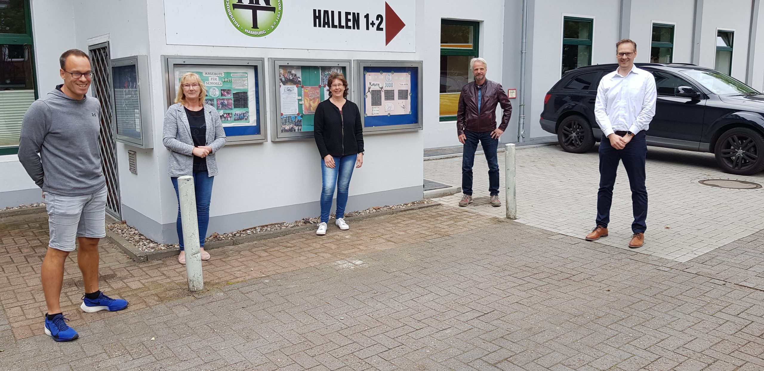 HNT -Mark Schepanski Beate Pohlmann Karen Hacker Henning Reh und Mark Schütter (v.l.n.r.) sprachen über die Modernisierung der Sportanlage Opferberg