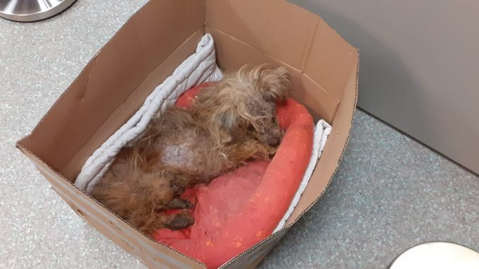 Eine Autofahrerin hatte den beigefarbenen, kleinen Hund, der auf den Namen Teddy getauft wurde, an der Raststätte Stillhorn in einem Pappkarton gefunden und um 2 Uhr ins Tierheim Süderstraße des HTV gebracht. Der vermutlich mindestens 14 Jahre alte Mischlingsrüde war eiskalt, jammerte vor Schmerzen und war in einem erbärmlichen Zustand: Sein Gesicht war vereitert, die Hinterläufe vermutlich durch Brüche verkrüppelt und schon abgestorben, er hatte aufgrund einer Hauterkrankung schlimme Wunden und war nur schütter behaart. Ein HTV-Tierrettungsfahrer brachte Teddy umgehend in eine Tierklinik. Leider konnte man nichts mehr für den kleinen Kerl tun: Er musste erlöst werden. „Einen so alten Hund in diesem schlechten Zustand in eiskalter Nacht sich selbst zu überlassen, ist mehr als grausam. Vermutlich wollten die Halter sich des Hundes auf diese Weise entledigen. Wir weisen nochmal darauf hin, dass überforderte Menschen ihr Tier rechtzeitig bei uns im Tierheim abgeben können – niemand muss sein altes und krankes Tier einfach aussetzen“, betont die tierärztliche Leitung des HTV, Dr. Urte Inkmann: „Leider war es für Teddy viel zu spät.“