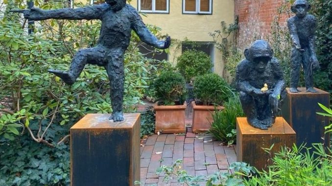 Aus einem Kellerraum entwendeten die Täter zudem drei, jeweils einen Meter große und rund 30 kg schwere Bronzeplastiken, die Affen in verschiedenen Körperhaltungen zeigen. Die Plastiken wurden nur in geringer Stückzahl gefertigt und haben einen Wert von rund 45.000 Euro.