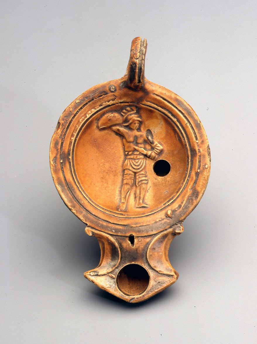 Arch. Museum -Römische Öllampe mit Darstellung eines Gladiators Arch. Museum -Römische Öllampe mit Darstellung eines Gladiators