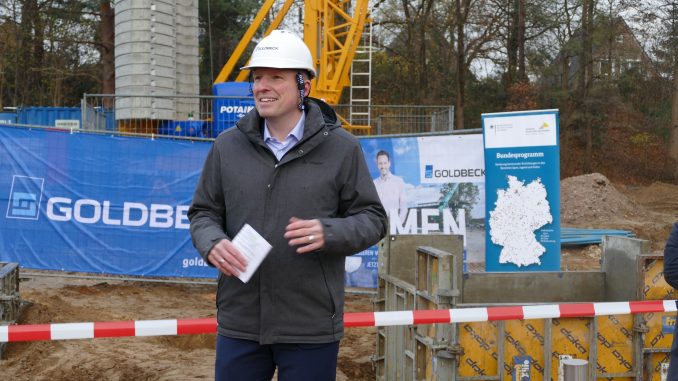 Bürgermeister Tobias Handtke dankte in seiner Rede allen Beteiligten für ihren Einsatz und das Engagement. „Das Projektteam zeigt vollen Einsatz und er ist davon überzeugt, dass wir im Frühjahr 2023 ein Gebäude einweihen können, von dem alle Bürgerinnen und Bürger der Gemeinde einen Nutzen ziehen können“, sagte Handtke. Außerdem habe er die Hoffnung, dass man die noch folgenden Meilensteine dieses Bauprojektes gebührend feiern könne und diese nicht auch im Schatten von Corona stattfinden müssen.