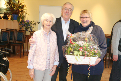 Dagmar Thiessen (re.) bedankt sich bei Luise und Hinrich Stroh mit einem prächtigen BlumenkorbFoto: pm