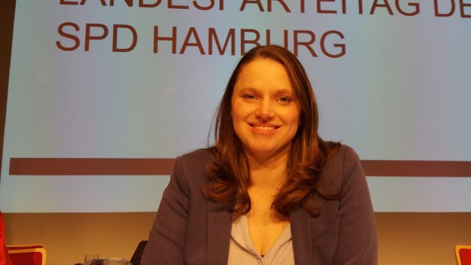 Hamburgs neue SPD-Vorsitzende kommt aus Harburg: Weil Hamburgs Ex-Bürgermeister Olaf Scholz, seit er Finanzminister und Vize-Kanzler in Berlin ist, die Aufgaben, des Landesvorsitzenden der Hamburger SPD zeitlich nicht mehr wahrnehmen kann, mussten die Hamburger Sozialdemokraten auch diese Funktion neu besetzen. Der Vorschlag des Landesvorstandes fand am Sonnabend große Zustimmung bei den Delegierten. Sie wählten Sozialsenatorin Melanie Leonhard (40) nach einer mitreißenden Rede mit 317 Stimmen bzw. 94,6 Prozent zu ihrer neuen Vorsitzenden. Damit ist sie nach Traute Müller erst die zweite Frau an der Spitze der Hamburger SPD.