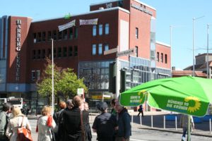 Harburg Center besetzt Spektakulär: Die Grünen hatten die Immobilie am 17. April 2014 für einige Stunden symbolisch besetzt Foto: pm