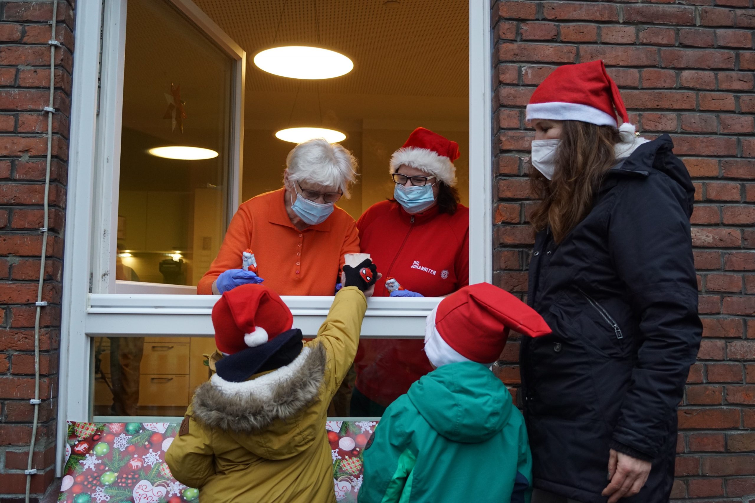 Foto: Johanniter -Die Vorschulkinder der Marmstorfer Grundschule überreichten den Tagesgästen Hoffnungslichter. Tagesgast Emma Schuda (links) und Sonja Eikhof Leitern der Tagespflege waren von der Aktion die Lehrerin Martina Riedel (rechts) initiiert hatte begeistert.