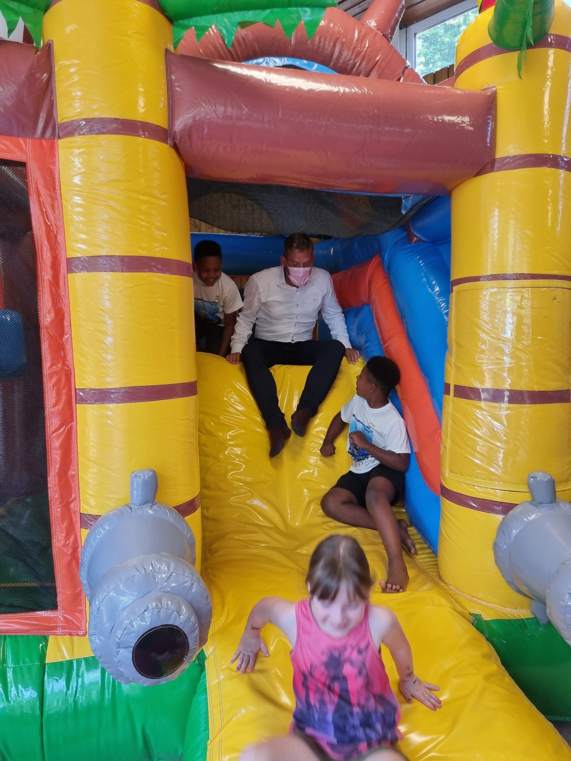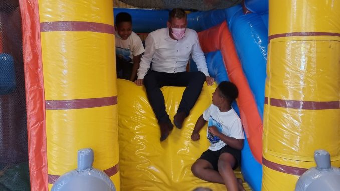 Wenn das Kind im Manne erwacht, dann kann sich selbst Falko Droßmann, Bezirksamtsleiter von Hamburg-Mitte, nicht zurückhalten: Bei der Einweihung der neuen Piraten-Hüpfburg des Vereins zur Förderung der Integration in Hamburg-Wilhelmsburg im Haus der Jugend Wilhelmsburg vergangenen Montag zog sich der 47-Jährige kurzerhand die Schuhe aus und erprobte persönlich das neue Highlight auf seine Tauglichkeit. Nicht nur die Kinder vor Ort bescheinigten der Hüpfburg einen hohen Spaßfaktor, auch Droßmann stand die Zufriedenheit ins Gesicht geschrieben. „Ich fand Hüpfburgen schon als Kind super“, verriet er vor der Einweihung.