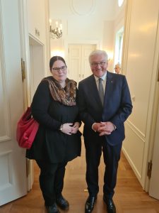 Neele Singh am 9. Oktober im Schloss Bellevue mit dem Bundespräsidenten Frank-Walter Steinmeier Neele Singh am 9. Oktober im Schloss Bellevue mit dem Bundespräsidenten Frank-Walter Steinmeier