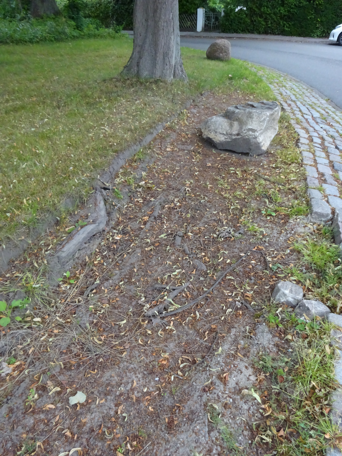 Die Meldung wurde vom Naturschutz WBZ 4 „zuständigkeitshalber an den Sachbearbeiter für Straßenbäume, Christian Kadgien“ (bezirkliche Stadt- und Landschaftsplanung) weitergeleitet. Da keine weiteren Maßnahmen im betroffenen Areal zu erkennen waren, rief Irmtraud Bosien bei dem Leiter des Fachamtes Management des Öffentlichen Raumes an. In diesem Gespräch habe dieser den Vorschlag gemacht, Findlinge in dem betroffenen Areal zu platzieren, damit die Busse die Baumwurzeln nicht mehr überfahren können. Bereits zwei Tage später erfolgt die Aufstellung von Findlingen rund um die Bushaltestelle. „Eine Sanierung der zerfahrenen Grasfläche und Abdeckung der freigelegten Baumwurzeln wurde bis zum heutigen Tage nicht in Angriff genommen“, bedauert Bosien.