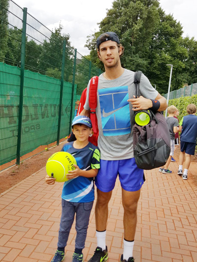 Julius Jauck – Karen Chatschanow HNT-Youngster Julius Jauck mit Tennisprofi Karen Chatschanow aus Russland Foto: HNT