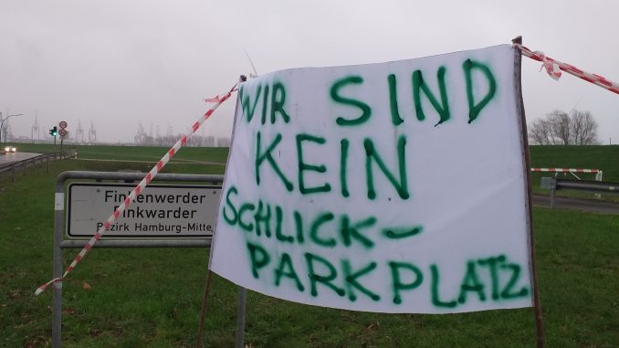 Der Umweltausschuss der Bürgerschaft hat am Freitag vergangener Woche bekannt gegeben, dass es nicht mehr geplant ist, die Dove Elbe im Osten der Stadt an die Tideelbe anzuschließen. „Eine weitere Prüfung zur Öffnung der Alten Süderelbe soll dagegen beschlossen werden“, befürchtet man in der Konsequenz jetzt auf Finkenwerder und in Neuenfelde. Zahlreiche Landwirte aus den beiden Stadtteilen hatten sich daraufhin am Nachmittag spontan mit ihren Treckern auf dem Parkplatz neben dem Restaurant „Storchennest“ in Finkenwerder eingefunden um ihrem Protest gegen eine Öffnung der Alten Süderelbe, die jetzt als eine von zwei verbliebenen Varianten (wobei eine auf den guten Willen von Schleswig-Holstein angewiesen ist) immer wahrscheinlicher zu werden droht, Ausdruck zu verleihen,