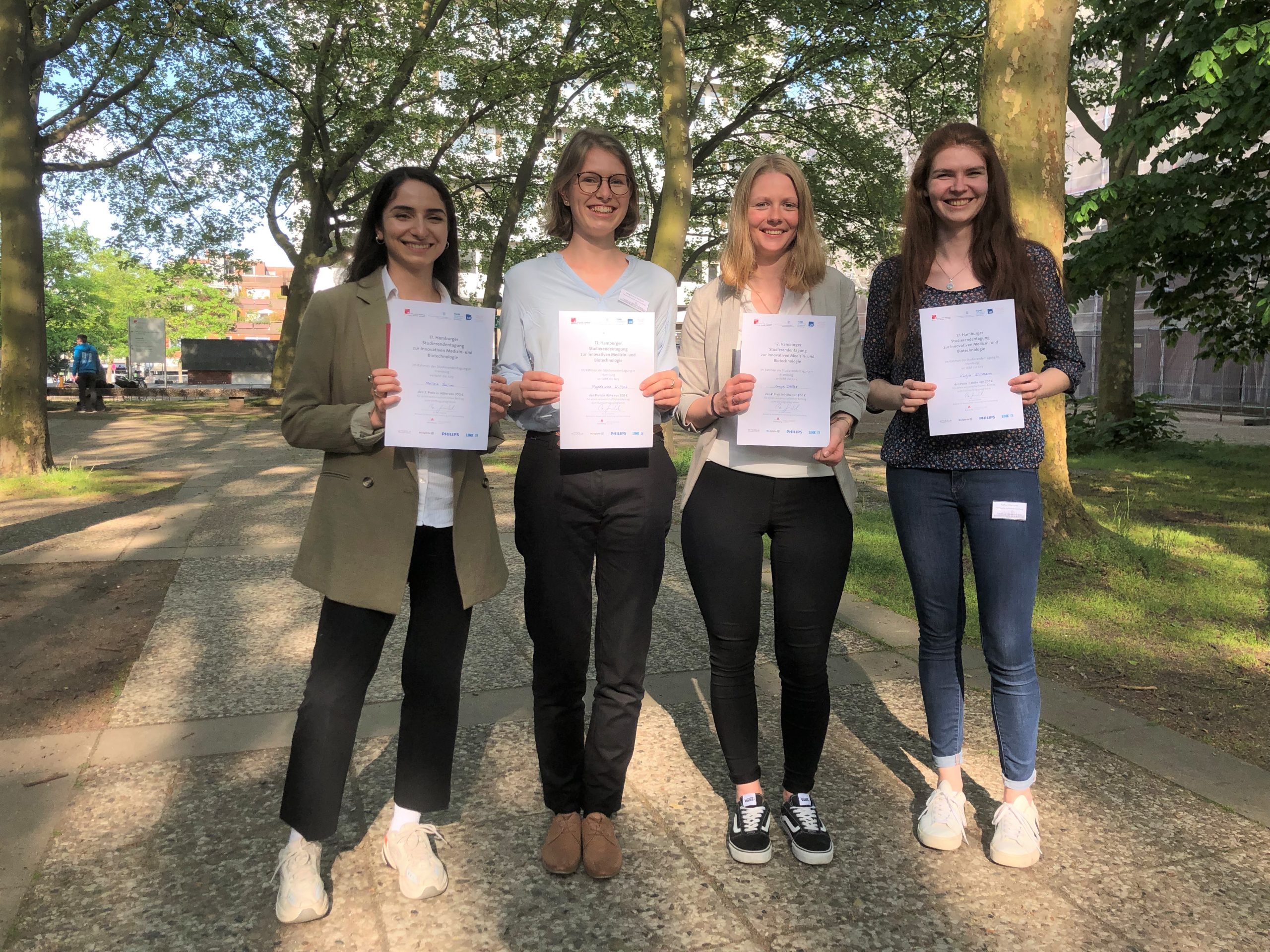 Foto: TU Hamburg -Die Studentinnen Fenja Stiller Melina Salimi Magdalena Willsch und Katja Glismann der TU Hamburg freuen sich über die Auszeichnung
