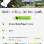 Zwischen zwei Routen können sich Interessierte den Inselpark erschließen. Die vier Kilometer lange Wasserroute nimmt sich dem wichtigsten Thema der Elbinsel Wilhelmsburg an. An 14 Stationen erfahren die App-Nutzer mehr zu Sturmfluten, Schöpfwerken und zu den Tieren und Pflanzen, die in und an den Wettern und Bracks der naturnahen Parklandschaft leben. Die zweite Route ist eine interaktive Schnitzeljagd und richtet sich an Familien und Kinder. Zusammen mit der Möwe Kaja lässt sich der Park auf einer geheimen, zwei Kilometer langen Route spielerisch erkunden. Durch die Lösung kniffliger Fragen winkt am Ende eine Medaille.