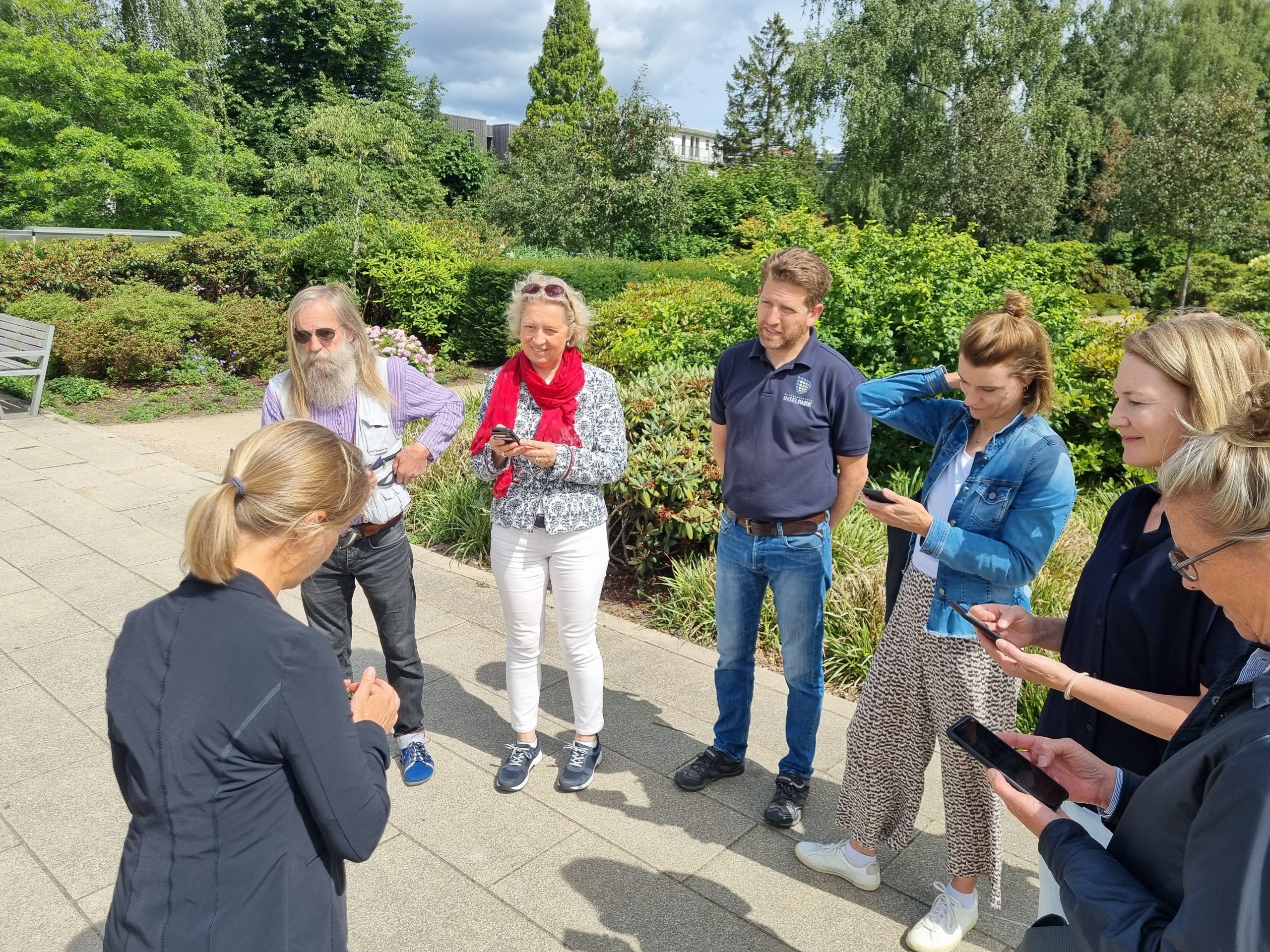 Nun wird es noch spannender, den Wilhelmsburger Inselpark zu besuchen: Ab sofort können große und kleine Besucher den Inselpark mit der kostenfreien App „Natürlich Hamburg“ erkunden. Damit hält die App der Behörde für Umwelt, Klima, Energie und Agrarwirtschaft (BUKEA) nun neben Naturschutzgebieten auch erstmals eine Parkanlage zum Entdecken parat. Wie das geht, stellten die zahlreichen Akteure, die an dem Projekt beteiligt waren, vergangenen Donnerstag vor. „Die App passt besonders gut in den Inselpark. Hier werden Natur und Garten mit Sport und Bewegung kombiniert. Es wird Wissen vermittelt in Bewegung in der Natur“, zeigt sich Eva Henze, Abteilungsleiterin Stadtgrün im Bezirk Hamburg-Mitte, sehr zufrieden mit dem Produkt.