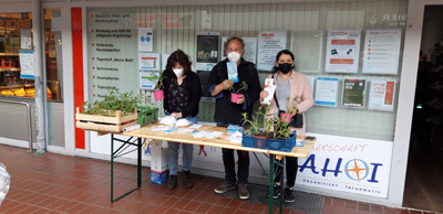 Anlass dieser freundlichen Geste war der Nachbarschaftstag. Thomas Sommer vom Nachbarschaftsgarten hatte einstmals einen Ableger der Spornblume bekommen, der sich