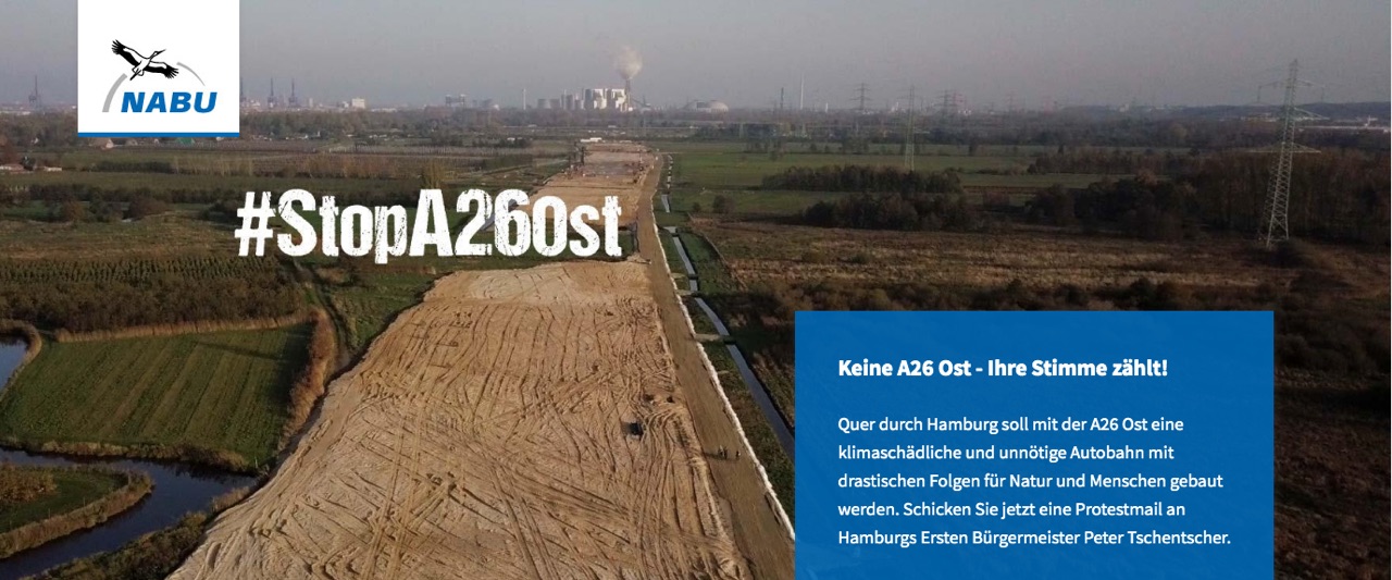 Der NABU Hamburg ist gegen den geplanten Bau der A26-Ost und hat nun eine Online-Petition gestartet. Screenshot: au