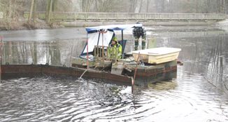 „Schwimmraupe“ im Einsatz Neuwiedenthaler Teich wird gesäubert (mk) Neuwiedenthal Was für ein urtümliches Wesen dreht im Neuwiedenthaler Teich seine Runden? (bittte weiter lesen)