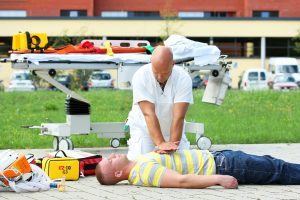 helios -Die Merksätze lautern: Prüfen Rufen Drücken. Prüfen ob der oder die Betroffene ansprechbar ist und noch atmet rufen der Notfallnummer 112 drücken auf den Brustkorb bis ärztliche Hilfe eintrifft. 100% Reanimation ± 100 mal pro Minute drücken bis ärztliche Hilfe eintrifft.