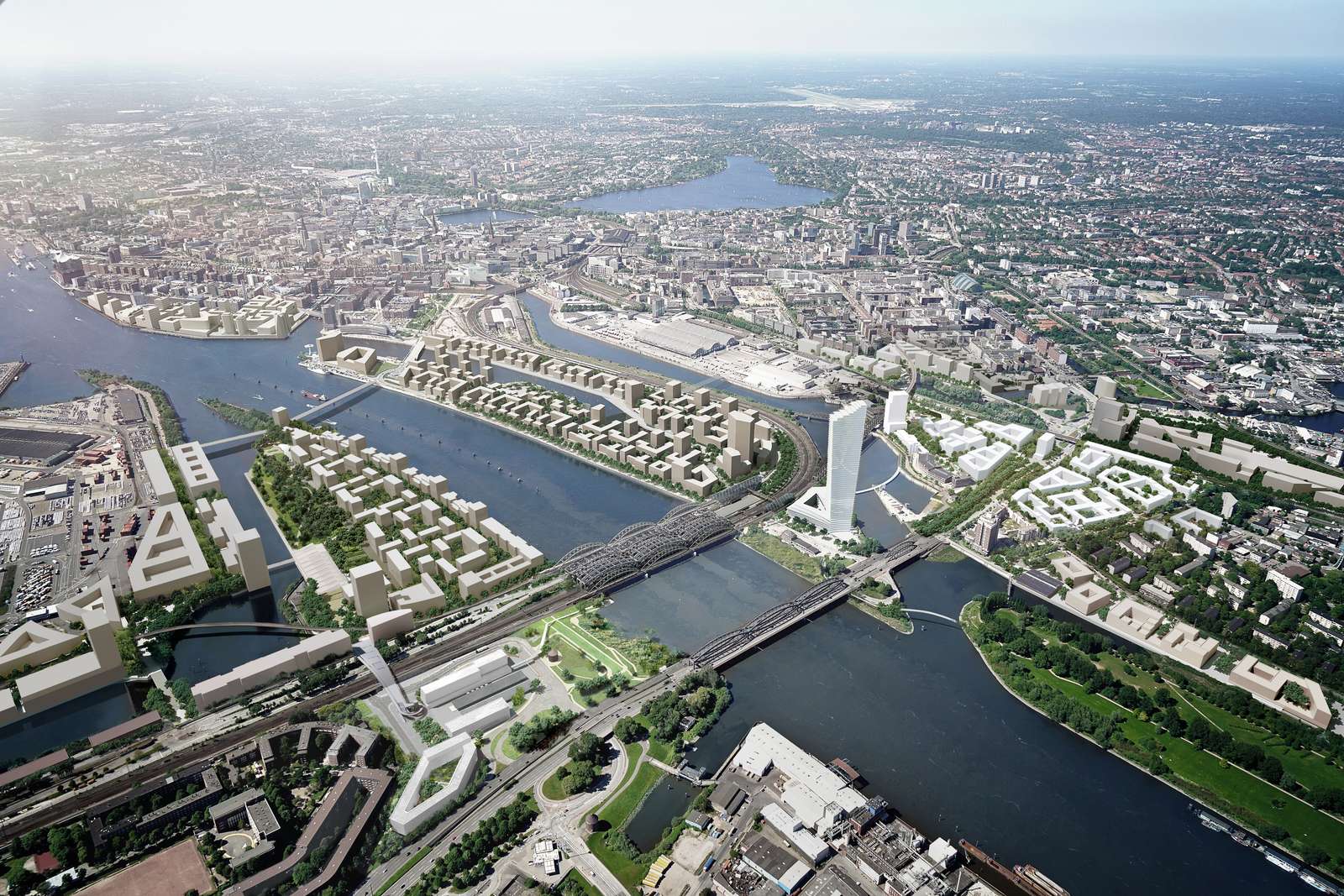 Ein Blick aus der Vogelperspektive auf den geplanten Stadteingang an den Elbbrücken Foto: GMP Ein Blick aus der Vogelperspektive auf den geplanten Stadteingang an den Elbbrücken Foto: GMP
