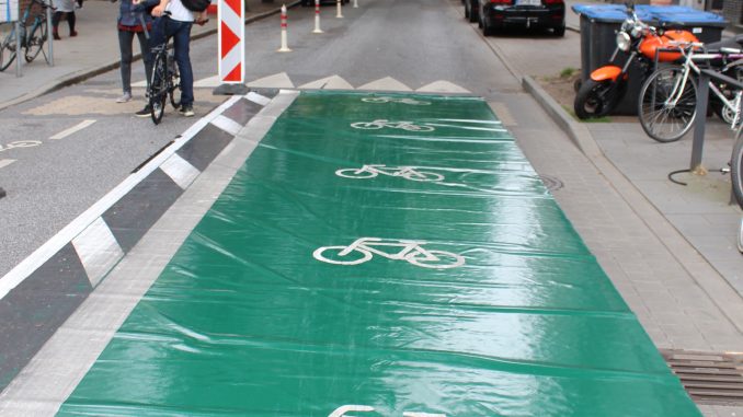 Geplant waren im vergangenen Jahr mehrere Aktionen, mit denen die Initiative auf Missstände hinweisen, alternative Straßengestaltungen und -nutzungen ausprobieren sowie eine Plattform zum Austausch anbieten wollte. Fast alle mussten coronabedingt ausfallen, bis auf den „Pop-Up“-Radweg auf der Fährstraße zwischen Kreisverkehr und Georg-Wilhelm-Straße, der am 8. September für rund zwei Stunden geschafffen wurde. Das Problem aus Sicht der Initiative Autokorrektur hier: „Die Fährstraße ist eine der meistfrequentierten Straßen im Stadtteil. Obwohl auch viele Radfahrer diese Hauptverkehrsader nutzen, gibt es keinen ausgebauten Radweg. Zahlreiche parkende Autos blockieren einen der beiden Fahrstreifen und stören damit den Verkehrsfluss bzw. machen die Fährstraße unübersichtlich. Dadurch werden Radfahrer unterdrückt und können die Fährstraße nur mit Angst nutzen. Eine sinnvolle Lösung für diesen Missstand wäre ein gesicherter Radweg. Wenn die Spur, die üblicherweise voller parkender Autos ist, für einen beidseitigen Radweg genutzt wird, könnten sich Radfahrer sicherer fortbewegen und ein besseres Radwegenetz aufgebaut werden!“
