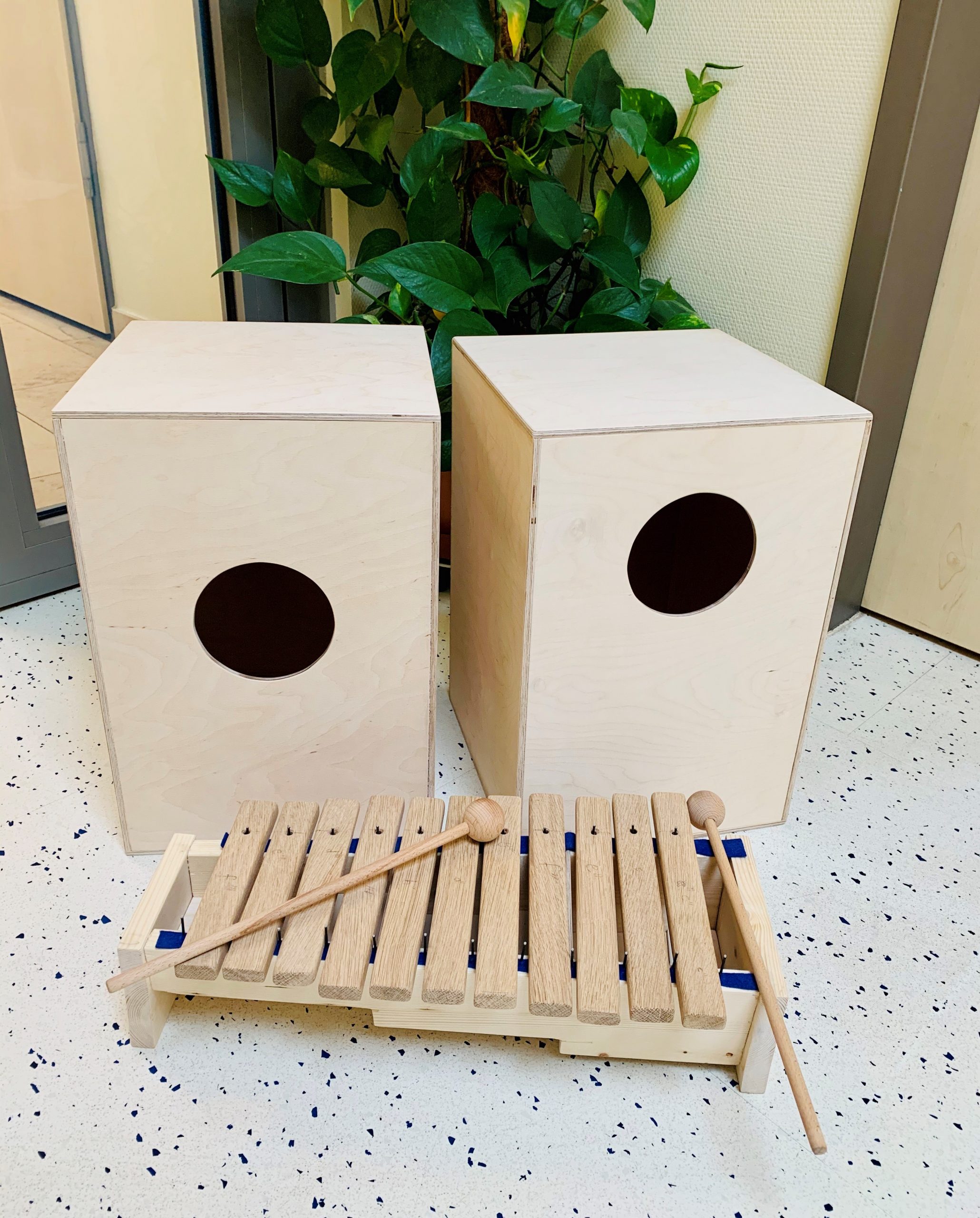 „Das gemeinsame Planen und Bauen eines Objekts macht nicht nur viel Spaß, es fördert vor allem die Gruppendynamik und die Gruppenfähigkeit des Einzelnen“, weiß Filmar. Der Diplom-Psychologe und Tischlergeselle bringt einiges an Erfahrung in der Arbeit mit Kindern und Jugendlichen mit: Unter anderem leitete er ein Jugendhaus in Brasilien und arbeitete sechs Monate in einem Straßenkinderprojekt. Seit fünf Jahren kommt er zum gemeinsamen Tischlern in die Kinder- und Jugendpsychiatrie nach Harburg. Das Ergebnis der dreitägigen Arbeit in diesem Jahr: zwei Kistentrommeln („Cajones“) und ein Xylophon. Die selbstgebauten Instrumente werden ab sofort im Rahmen der Musiktherapie eingesetzt. Ermöglicht wurde das Projekt durch den Förderverein Haus- und Krankenhausunterricht Hamburg e.V., der sich für die abwechslungsreiche Förderung von jungen Menschen während Krankenhausaufenthalten engagiert.